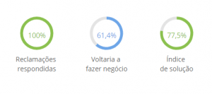 O site da Reclame Aqui nos permite observar os números exatos das reclamações e soluções. Assim poderemos entender, ainda mais, a reputação “bom” alcançado pela ClickBus.